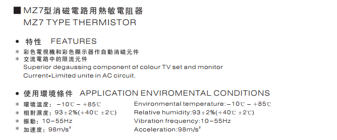 PTC熱敏電阻器:是一種以鈦酸鋇為主要成分的半導體陶瓷元件,當溫度增加到居里溫度以上時,其電阻值呈階躍式增加,可達到4~10個數量級。它具有電阻值隨溫度的增加而增加的特性。其中MZ2型熱敏電阻器由于過流保護作用而用于通訊及交流電路中。MZ3型熱敏電阻器具有延長燈絲壽命及節約能源而用于電子節能燈及電子鎮流器,用于數字式萬用表中作過流保護元件、交流電路中過熱保護。MZ9型馬達啟動熱敏電阻器可作為無觸點開關用于制冷設備的壓縮機及大功率馬達中。MZ7型消磁電路用熱敏電阻器,在彩色電視機和彩色顯示器作自動消磁元件,