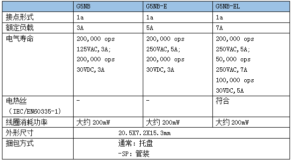 高接點負載和更長的壽命         G5NB-EL(5A 200Kopcs)