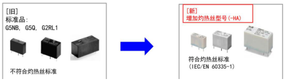 而我們的歐姆龍繼電器G5NB/G5Q/G2RL系列為此推出灼熱絲帶-HA型號,兩者的區(qū)別就在于外殼和基座的塑料材質(zhì)是否為阻燃材料。
