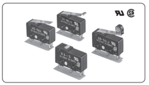 那么在智能售貨機中的線束上會有用到歐姆龍的微動開關,其中一個作用是起到開關門的控制,常用的歐姆龍微動開關型號是SS-5GL2/SS-5GL,如下圖所示:
