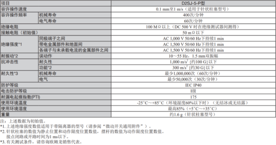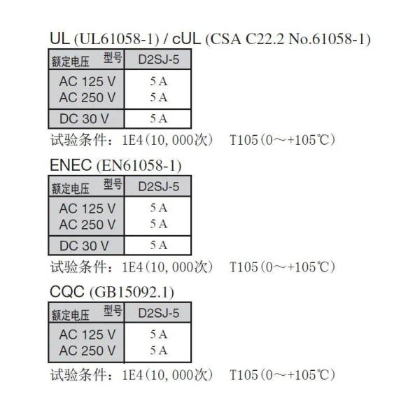 對(duì)歐姆龍而言,安全向來重要。歐姆龍D2SJ的額定電壓、額定電流均達(dá)到中國CQC、北美UL和歐洲ENEC的安全標(biāo)準(zhǔn),并全面落實(shí)中國、北美和歐洲GB15092.1、UL61058-1、EN61058-1要求的指標(biāo)。值得一提的是歐姆龍D2SJ在DC 500V時(shí),絕緣電阻可達(dá)100MΩ以上,電阻阻值越大,流過它的電流越小,故使用起來也就越安全。