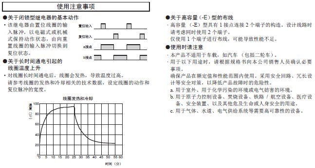 注1.?額定電流、?線圈電阻為線圈溫度+23℃時的值,±10%。 注2.?動作特性為線圈溫度+23℃時的值。 注3.?最大容許電壓為繼電器線圈能夠施加的電壓的最大值。 |