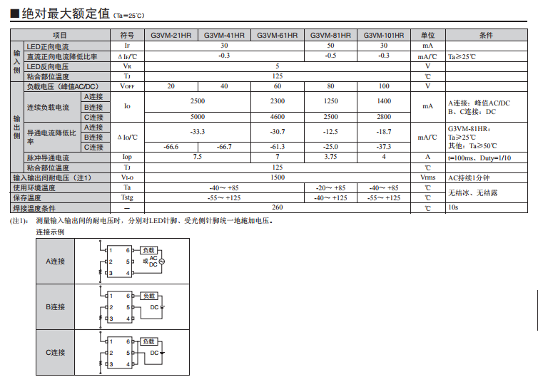 G3VM-31/61/101WR 光敏半導體MOS FET