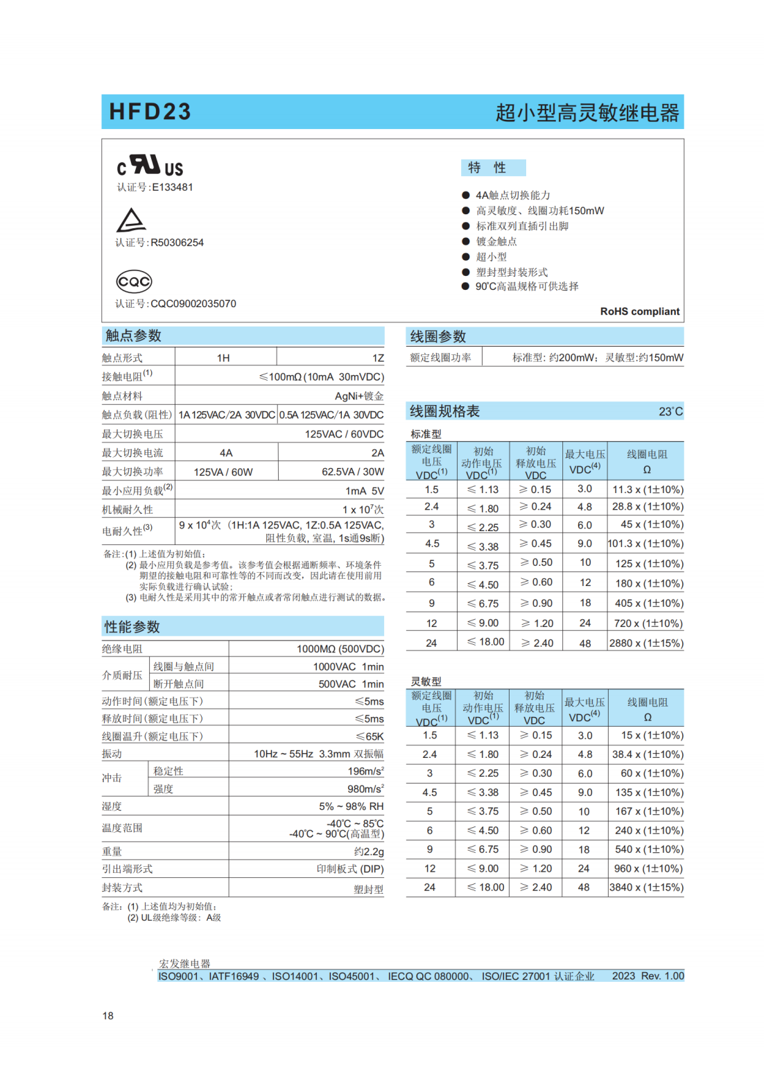 HFD23-005-1ZS宏發(fā)繼電器