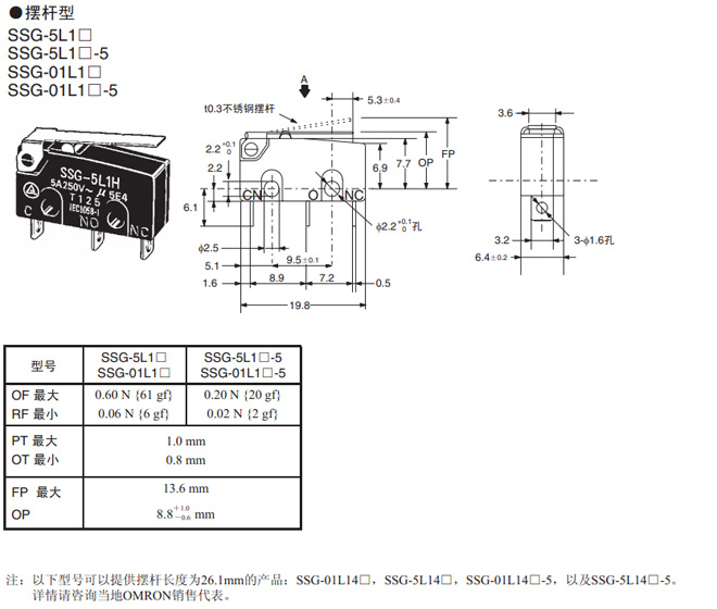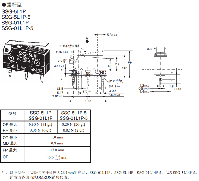 注:SPST-NO和SPES-NC型號的詳細情況,請咨詢當地OMRON銷售代表