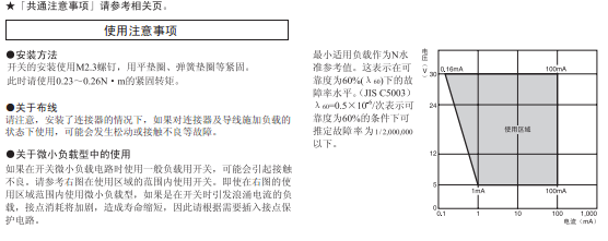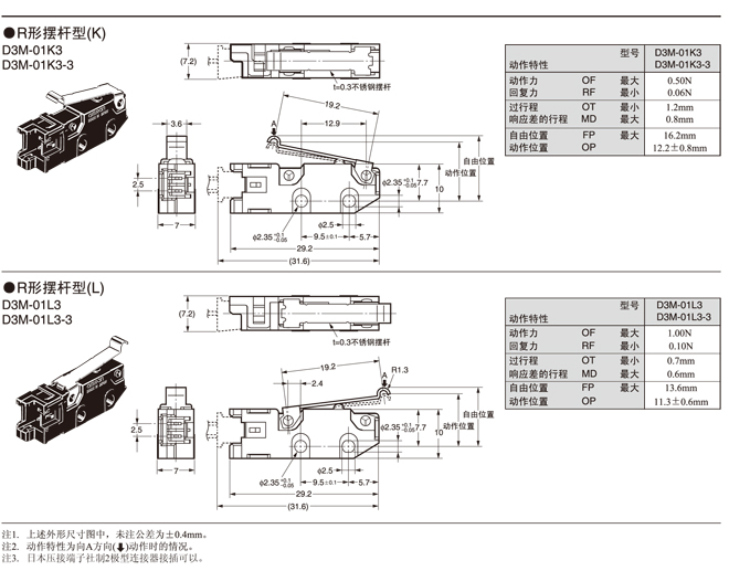 *2. 在針狀按鈕型中為了自由位置和總行程位置的數據,在擺桿型中為總行程位置的數據。