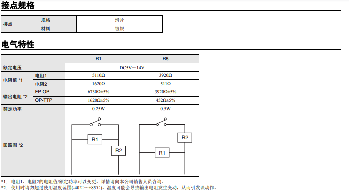 內(nèi)置電阻,可檢測4種狀態(tài) 長行程密封型開關(guān) 開關(guān) ON/OFF/短路/斷線 輸出4種狀態(tài) 即使無擺桿也便于使用的長行程規(guī)格 (OT參考值:1.4mm) 憑借滑動接點(diǎn)結(jié)構(gòu)實(shí)現(xiàn)高接觸可靠性和安靜的動作音