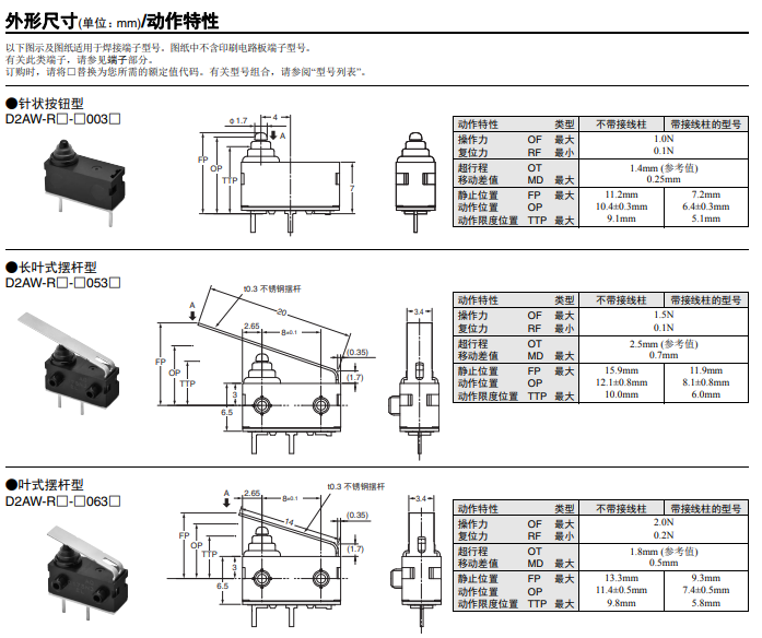 D2AW-R 歐姆龍長行程密封型歐姆龍開關(guān)