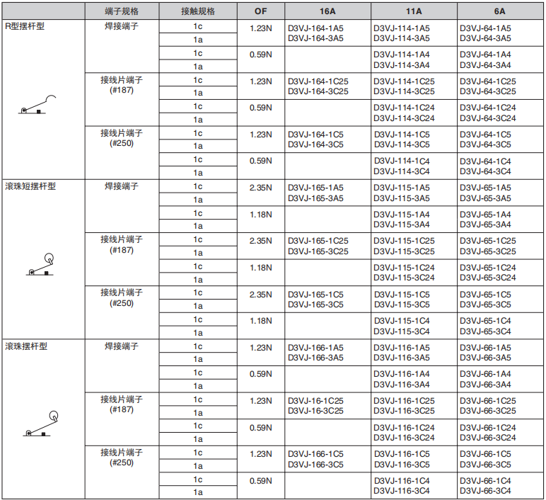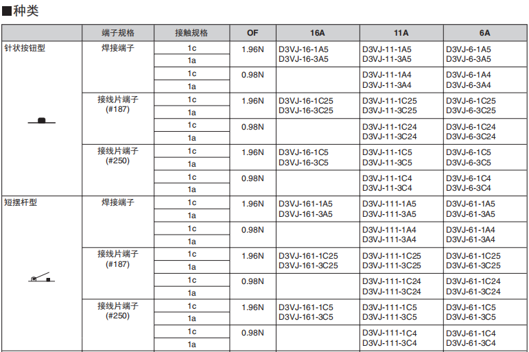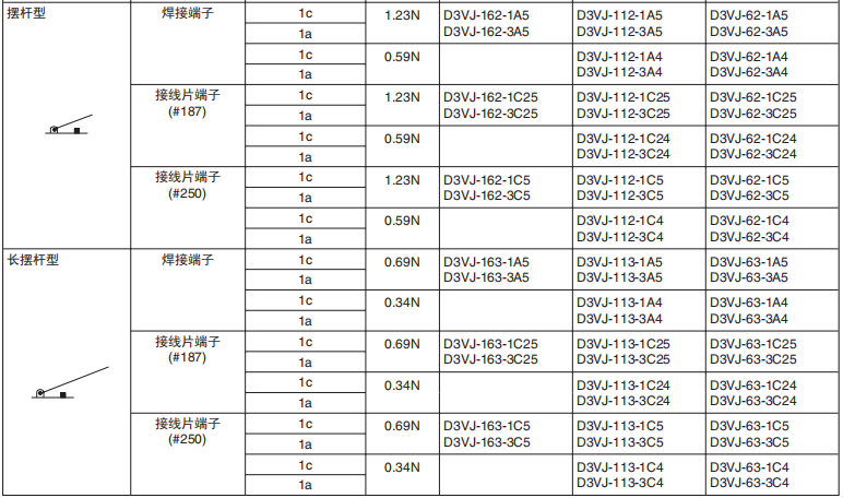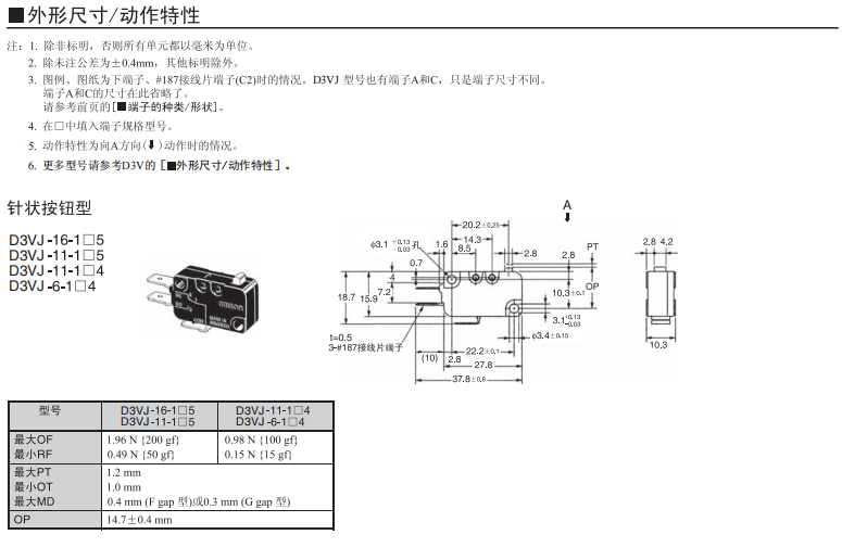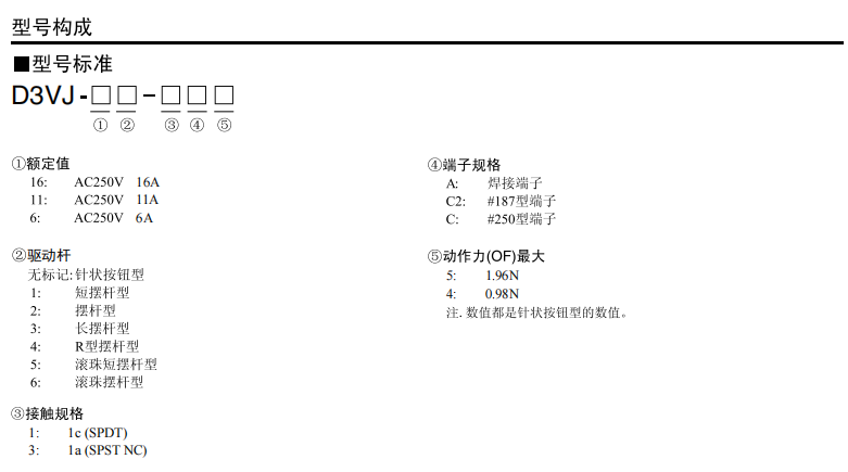 D3VJ小型微動歐姆龍開關