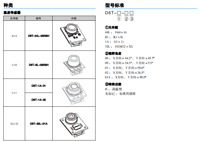 | 型號(hào) | D6T-44L-06/06H | D6T-8L-09/09H | D6T-1A-01 | D6T-1A-02 | D6T-32L-01A | |