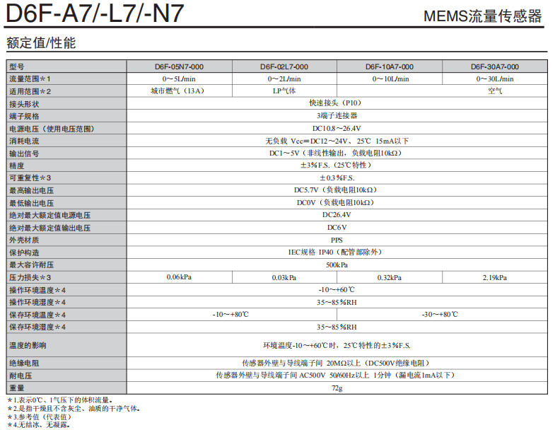 D6F-A7/-N7/-L7燃氣流量歐姆龍傳感器